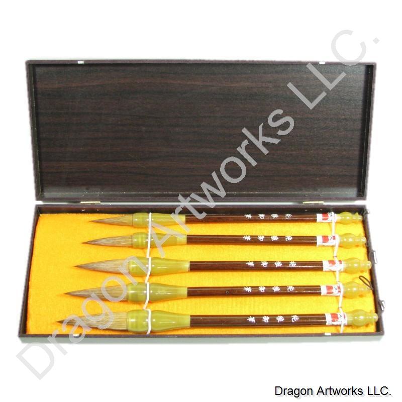 This is a set of five premium quality Chinese art brushes made with natural wolf hair bristles.