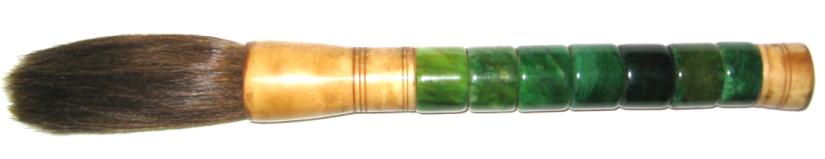 This large jade handle Chinese art brush is very good feng shui to decorate your room, but it is not good for painting or writing. The handle of this Chinese art brush is made with seven real green jade rings and wood. The jade rings all together have a length of seven inches. This Chinese green jade handle art brush is very beautiful and a wonderful Asian theme decor item, as the jade symbolizes luck and happiness.