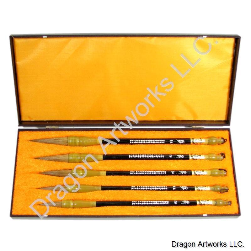 This artist paint brush set includes five large Chinese art brushes that are very suitable for both painting and writing calligraphy. The brushes offered in this set are made using wolf hair in several popular sizes to ensure you have the proper brush at your disposal to create beautiful and detailed Chinese brush paintings. If you or a friend are looking for a set of large high quality Chinese artist paint brushes at a reasonable price, this set is an excellent choice.