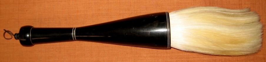 This large Chinese art brush will easily produce the fine brush strokes required for creating brush paintings or writing very large Chinese calligraphy characters. The natural sheep hair bristles will form a nice point when wet. This Chinese artists paint brush is made using natural cow horn and soft sheep hair bristles, which produce fine brush strokes.