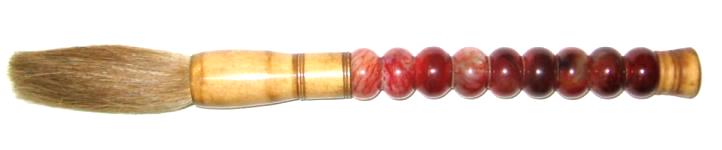This Chinese art brush should only be used to decorate a room in your home or office, not for painting. The handle of this Chinese art brush is made of nine real red jade beads and wood. The jade part length is five inches in length. Jade is a powerful symbol of good luck and happiness in China, and can help the master of a home turn bad luck into good.