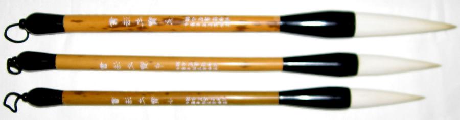 The calligraphy on the handles was hand carved in Chinese, which means treasure of the calligraphy and Chinese calligraphy association supervised manufacture. This Chinese art brush set is good for calligraphy or watercolor painting.
