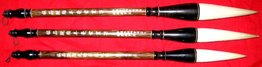 The calligraphy on the handles was hand carved in Chinese, which means degreased and the best sheep hair Chinese calligraphy painting brush and Chinese calligraphy association supervised manufacture. Because these brushes are hand-made in China using natural bamboo handles the size and color will vary. This Chinese art brushes set is super high quality sheep hair and will last very long time for writing and painting.